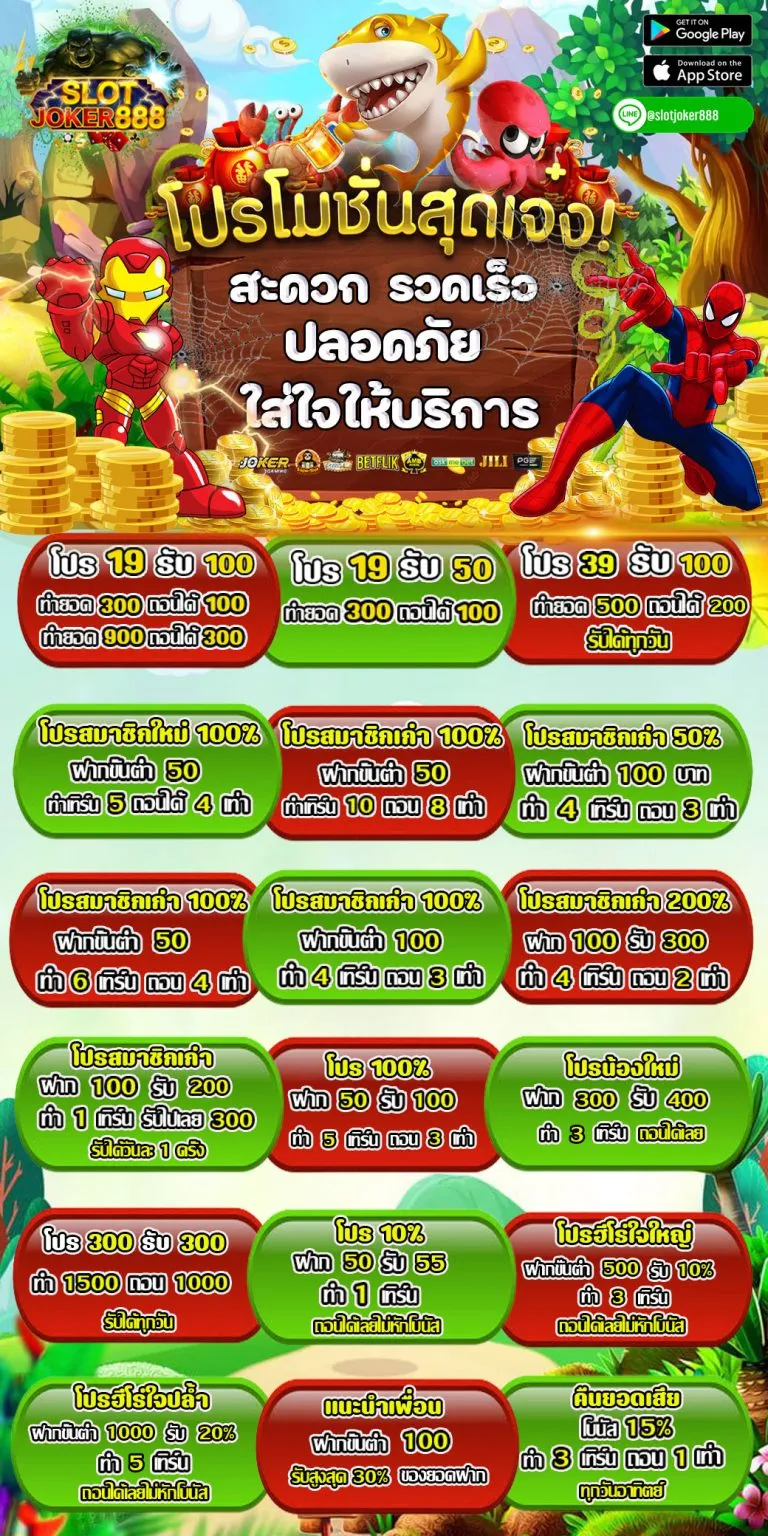 SlotJoker888 ได้กลายเป็นแพลตฟอร์มยอดนิยมอันดับต้นๆ ของนักพนันชาวไทย ด้วยการผสานรวมความปลอดภัยขั้นสูง ธุรกรรมรวดเร็ว และเกมพนันหลากหลายรูปแบบไว้ภายในเว็บไซต์เดียว ผู้เล่นจึงได้รับประสบการณ์การเดิมพันที่ครบวงจร ตั้งแต่การสมัครสมาชิกจนถึงการถอนเงินอย่างราบรื่นระบบความปลอดภัยของSlotJoker888ใช้การเข้ารหัส SSL 128-บิต ในทุกธุรกรรม เพื่อป้องกันข้อมูลรั่วไหลและการโจมตีจากบุคคลภายนอก ขณะเดียวกัน เซิร์ฟเวอร์ของเว็บไซต์ก็ตั้งอยู่ในมาตรฐานสากล มั่นใจได้ว่าข้อมูลส่วนตัวและประวัติการเล่นจะถูกเก็บรักษาอย่างปลอดภัยโดยไม่เกิดปัญหาใดๆในส่วนของเกมพนันSlotJoker888รวบรวมเกมคุณภาพจากค่ายชื่อดังต่างๆ มาไว้ให้ผู้เล่นได้เลือกอย่างจุใจ เริ่มจากสล็อตออนไลน์ที่มีธีมหลากหลาย ฟีเจอร์เกมทันสมัย รองรับการเล่นบนมือถือและเดสก์ท็อป ต่อยอดด้วยเกมยิงปลา 3 มิติที่มาพร้อมบอสสุดโหดและไอเท็มช่วยเสริมความสนุก นอกจากนี้ยังมีโต๊ะคาสิโนสด (Live Casino) ถ่ายทอดสดตรงจากต่างประเทศ ให้ผู้เล่นได้สัมผัสบรรยากาศจริงแทนการนั่งในห้องเดิมพันด้านการเงินSlotJoker888รองรับการฝาก–ถอนแบบไม่มีขั้นต่ำ ผ่านทุกธนาคารชั้นนำของไทยและ TrueMoney Wallet ทำรายการเสร็จสิ้นภายใน 10 วินาที โดยไม่ต้องส่งสลิปยืนยัน ช่วยให้ผู้เล่นสามารถโฟกัสกับการวางแผนและใช้กลยุทธ์ในการเดิมพันได้เต็มที่โปรโมชั่นของSlotJoker888ก็เป็นอีกหนึ่งจุดเด่นที่สร้างความคุ้มค่าให้กับสมาชิกใหม่และเก่า เริ่มตั้งแต่โบนัสต้อนรับสำหรับผู้สมัครใหม่สูงสุดถึง 100% คืนยอดเสียรายสัปดาห์ 10% เพื่อลดแรงกดดันในการเล่น และโปรฯ แนะนำเพื่อนที่มอบเครดิตให้สูงถึง 20% ของยอดฝากเพื่อน ช่วยให้ผู้เล่นมีต้นทุนเพิ่มขึ้นเมื่อชวนคนรู้จักมาสนุกด้วยกันสำหรับผู้ที่ยังไม่มั่นใจในการเดิมพันด้วยเงินจริง เว็บไซต์เปิดโหมดทดลองเล่นฟรี มีเครดิตฟรีสำหรับโหมดทดลองเล่นสล็อตปี 2025 ให้ได้ฝึกฝนเทคนิค ศึกษากติกา และเรียนรู้การบริหารงบประมาณก่อนลงสนามจริง ซึ่งช่วยลดความเสี่ยงและสร้างความมั่นใจให้ผู้เล่นใหม่ได้อย่างดีเยี่ยมด้วยความครบเครื่องทั้งด้านระบบเกม การบริการ และโปรโมชั่นที่ตอบโจทย์ทุกสไตล์การเดิมพัน จึงไม่แปลกใจที่SlotJoker888จะก้าวขึ้นมาเป็นหนึ่งในแพลตฟอร์มที่มีสมาชิกทะลุหลักแสนยูสเซอร์ และได้รับการบอกต่อแบบปากต่อปากอย่างต่อเนื่อง เสริมสร้างความเชื่อมั่นว่านี่คือทางเลือกอันดับหนึ่งสำหรับนักพนันไทยทุกคน